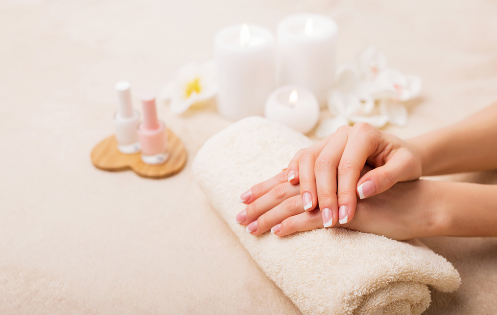 Kynsien muotoilu, kynsinauhojen siistiminen ja voiteet.